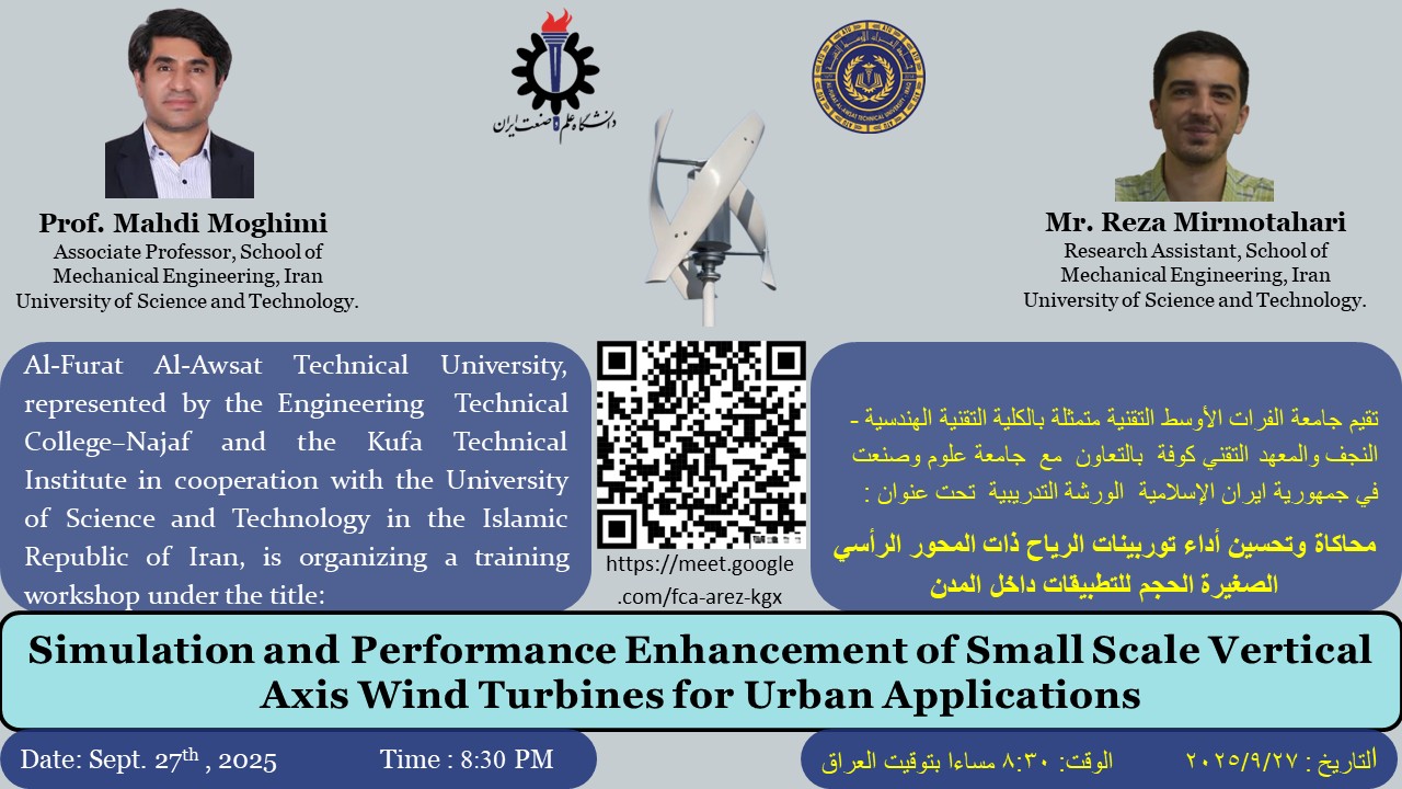 ورشة عمل بعنوان “Simulation and Performance Enhancement of Small Scale Vertical Axis Wind Turbines for Urban Application”