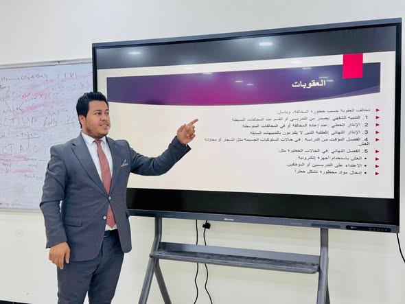 الأستاذة الدكتورة أنغام جاسم الرماحي عميد الكلية، أضافت أن “التعريف بالتعليمات والإجراءات وآليات التعامل مع المخالفات السلوكية والأكاديمية يضمن محيطاً علمياً قائماً على الاحترام المتبادل والمسؤولية .كما يسهم في تعزيز روح الانتماء والانضباط الجامعي. وتأتي هذه الندوة التوعوية ضمن سلسلة الأنشطة التي تحرص عليها الكلية لترسيخ السلوك الإيجابي وثقافة الالتزام بالقوانين الجامعية”